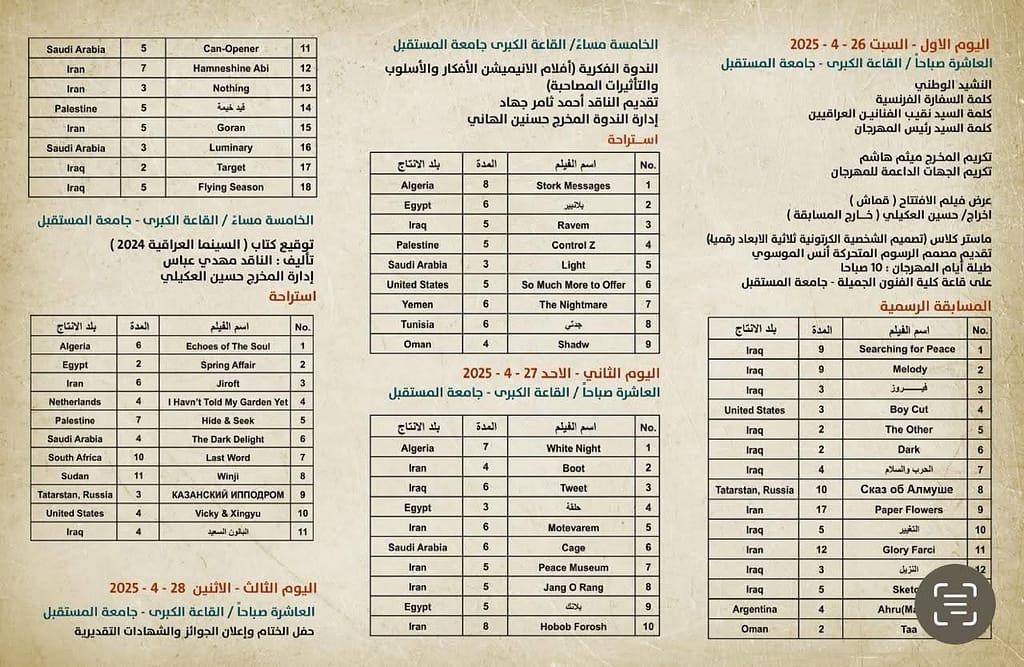 المنهاج الكامل لمهرجان بابل لسينما الأنيميشن Babel Film Festival for Animation النسخة الخامسة. شارك هذا الموضوع:فيس بوكXمعجب بهذه:إعجاب تحميل... مرتبط التصنيفات: 2025 0 تعليق اترك تعليقاً إلغاء الردلن يتم نشر عنوان بريدك الإلكتروني. الحقول الإلزامية مشار إليها بـ * الاسم * البريد الإلكتروني * الموقع الإلكتروني في ماذا تفكر؟ احفظ اسمي، بريدي الإلكتروني، والموقع الإلكتروني في هذا المتصفح لاستخدامها المرة المقبلة في تعليقي. أعلمني بمتابعة التعليقات بواسطة البريد الإلكتروني. أعلمني بالمواضيع الجديدة بواسطة البريد الإلكتروني. Δ