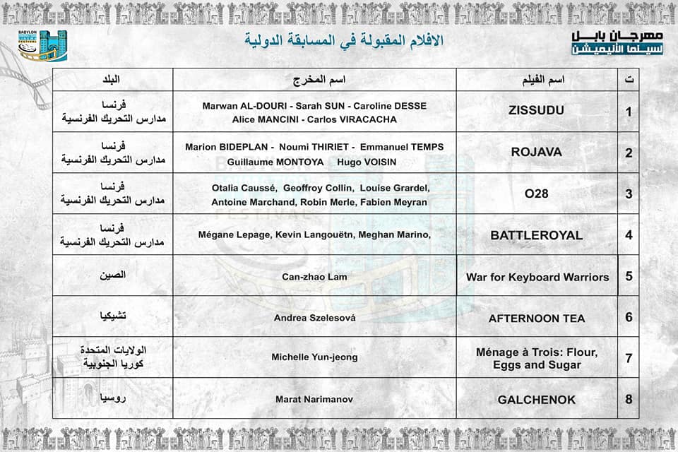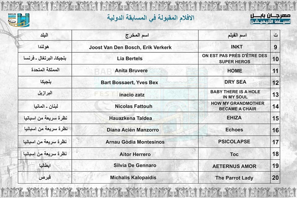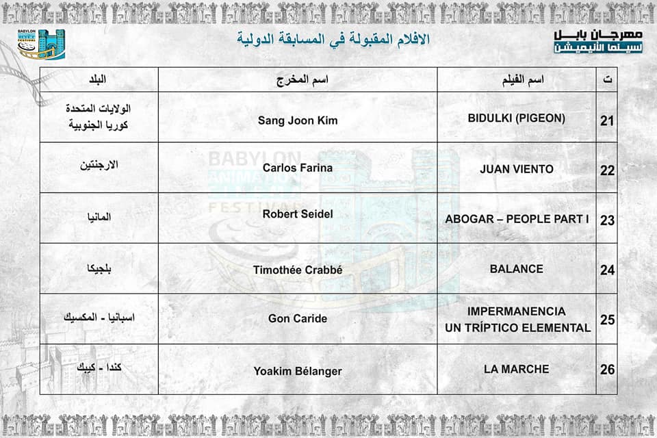 List of films accepted at the Babylon Animation Film Festival Within the works of the Babylon International Festival. For the year 2021